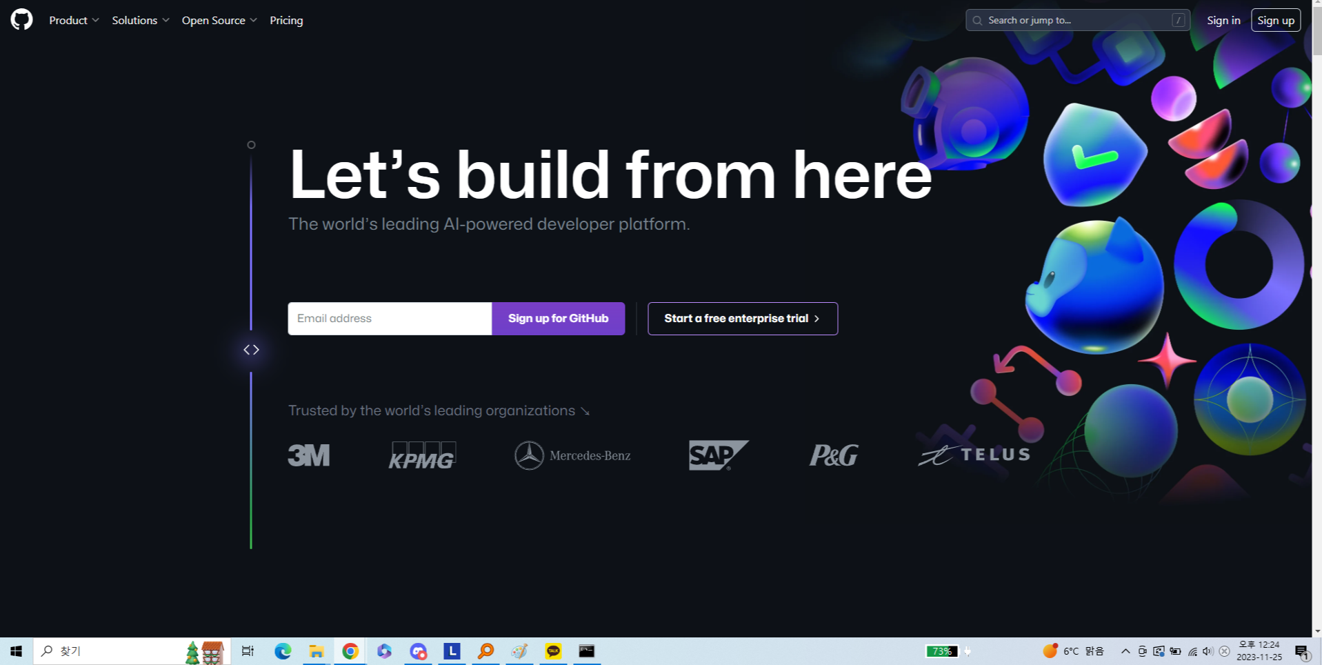 처음 github 홈페이지에 들어가면 아래 같은 화면을 볼 수 있다.