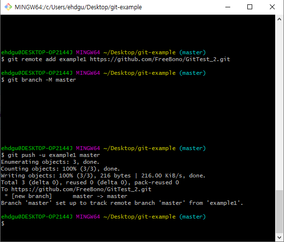 git remote add example1 https://github.com/FreeBono/GitTest_2.git
