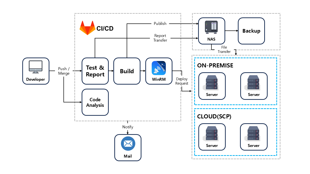 기술적으로는 코드 정적 분석과 CI/CD 파이프라인 구축을 직접 적용하면서 자동화와 품질 관리의 중요성을 체감했다. 또한 Git 서버의 다양한 기능을 익히고, Windows 서버 원격 관리(WinRM) 및 Rclone을 활용한 백업 자동화(프로토타입 개발에서 적용)를 구현하며 시스템 전반에 대한 이해를 넓혔다.
