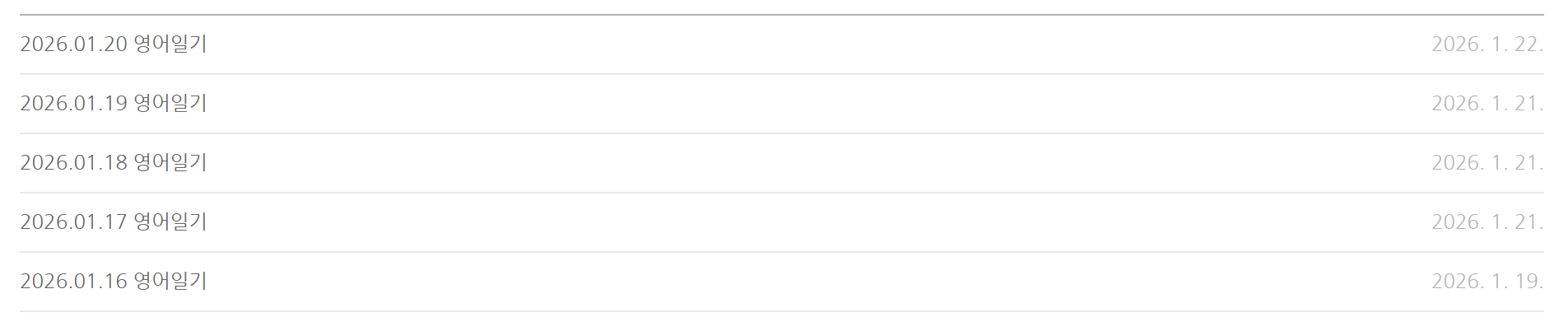 이번에는 무리하지 않고 하루에 영어일기 1편을 쓰는 것을 목표로 하고 있다.