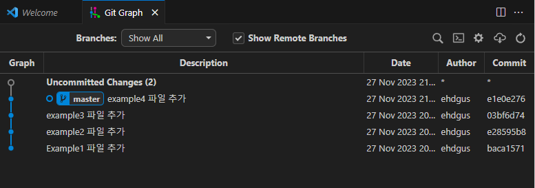 그리고 아래에는 내 커밋 메시지가 표기된다.