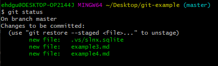 이렇게 두 번째 커밋 이후의 파일들이 Staging Area에 올라가있는 것을 볼 수있다. 즉 git add => (현재 시점) => git commit인 상태라고 볼 수 있다.