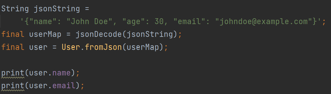 - fromJson 생성자로 Map객체를 User 인스턴스로 변환할 수 있다.