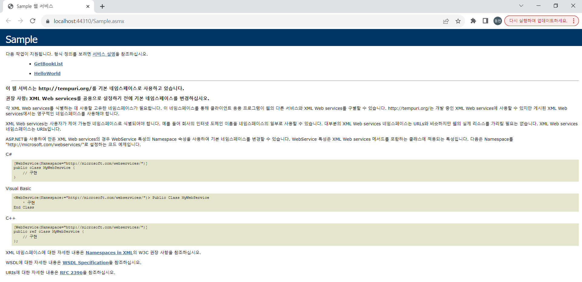 우선 SOAP 서버를 가동시켜 아래 페이지를 확인한다.