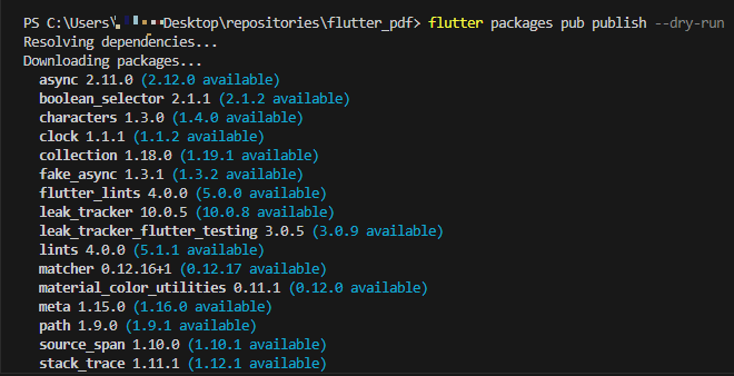flutter pub publish --dry-run