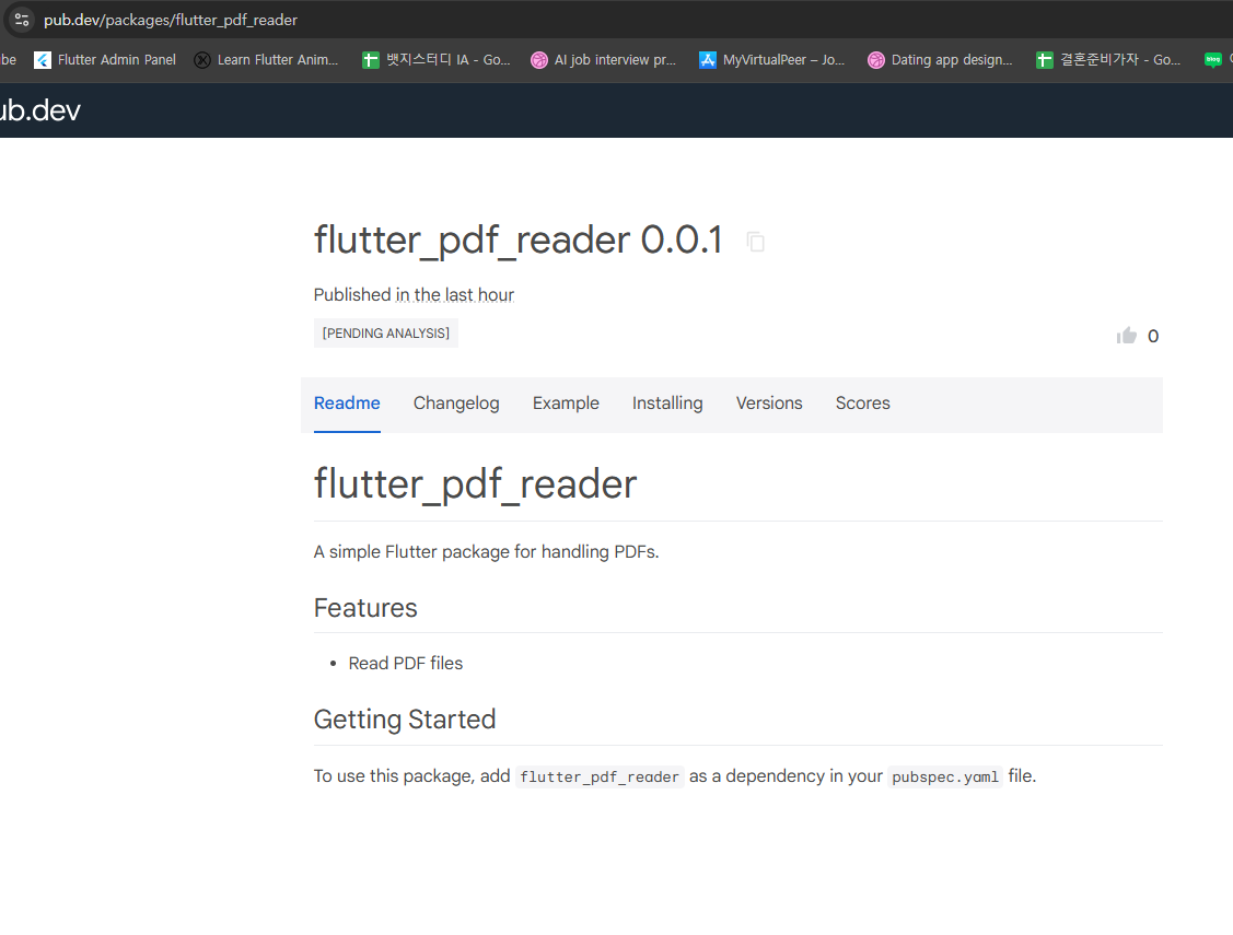 배포에 성공하면 위와같이 pub.dev에 링크가 생기게 되며 해당 링크에 접속해보면