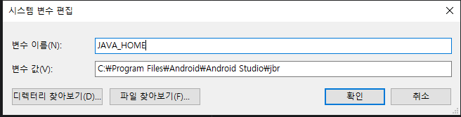 - java의 경우 안드로이드 스튜디오가 사용하고 있는 java위치(보통 JAVA_HOME)를 정확하게 파악하고 있어야 한다.