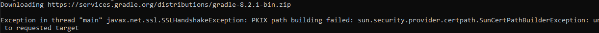 Gradle이 services.gradle.org 혹은 maven에서 필요한 파일들을 다운로드 받을 때, 다운로드에 실패하며 에러가 발생한다.